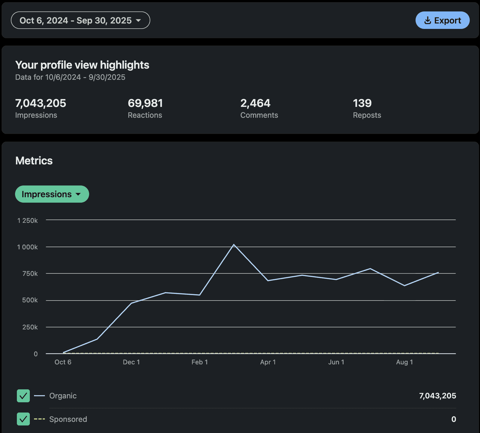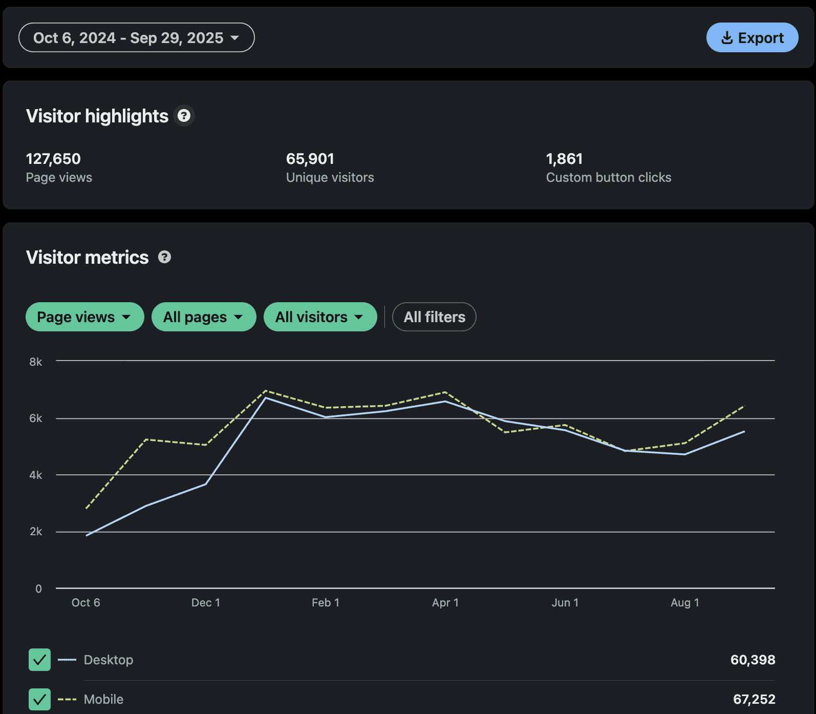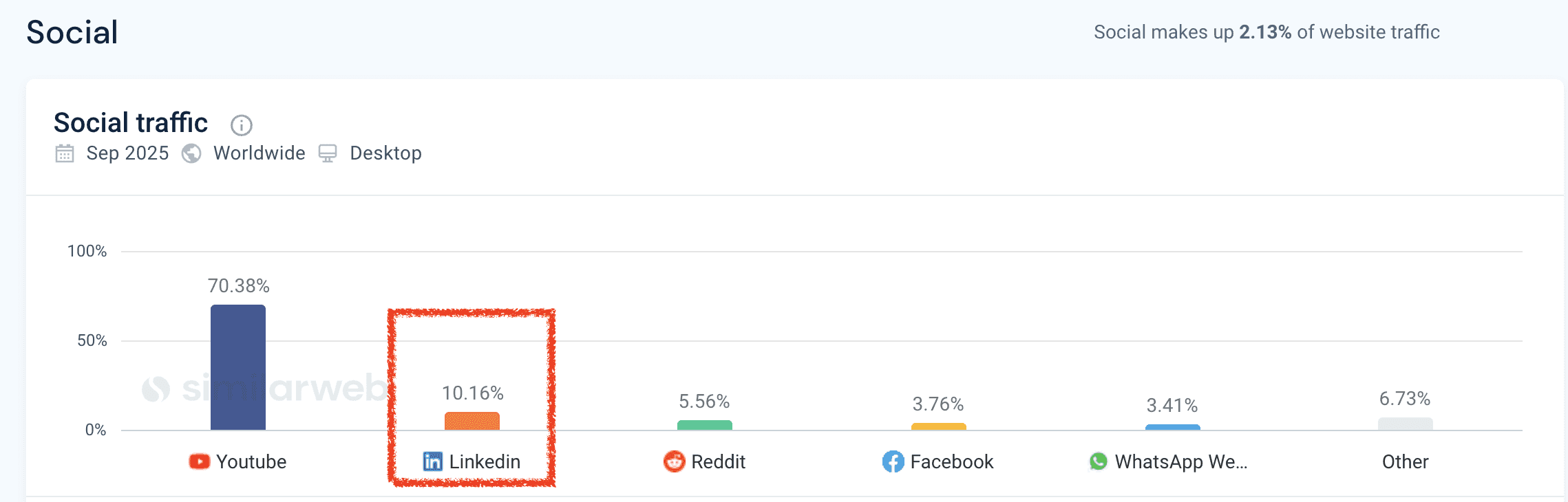 LinkedIn driving 6,455+ monthly website visits (as of September 30, 2025)