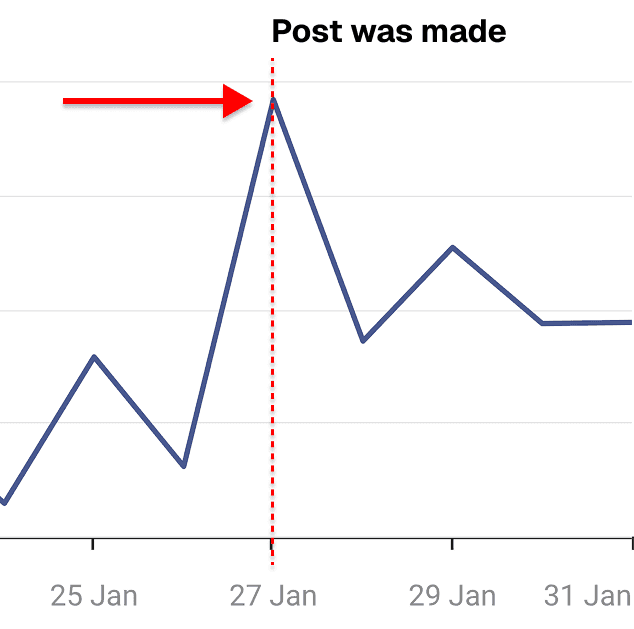And all of these followers were direct ICPs because the topic was within the founders niche and by testing out this bold idea, we were able to position them as a thought leader in the industry, which caused a spike in the website traffic.